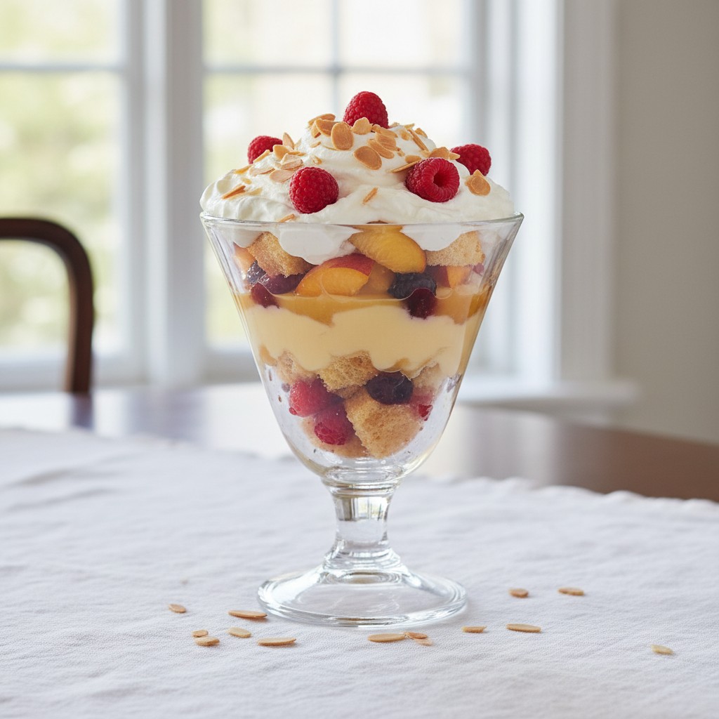 Absolutely, my dear! For a non-alcoholic version, simply substitute the sweet sherry with an equal amount of good quality fruit juice, such as raspberry, orange, or even a lovely apple juice. The sponge will still soak up the liquid beautifully, and the trifle will be just as delightful for all to enjoy.